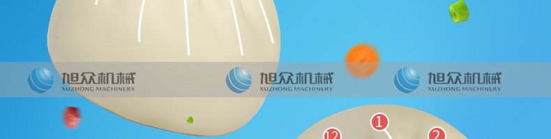XZ-512包子機,仿手工捏花12個花褶,外形美觀??芍谱鞯姆N類肉包、肉菜包、菜包、圓饅頭、奶黃包、豆沙包、叉燒包、南瓜餅、純白糖包,多種場所輕松適應(yīng)。