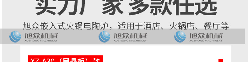 嵌入式電陶爐XZ-A30,實(shí)力廠家·采用高品質(zhì)零配件。廠家直銷,售后無憂。廣州旭眾食品機(jī)械有限公司是集研發(fā)設(shè)計(jì)、生產(chǎn)銷售于一體的現(xiàn)代化企業(yè)。一站式購(gòu)機(jī),無中間差價(jià)。