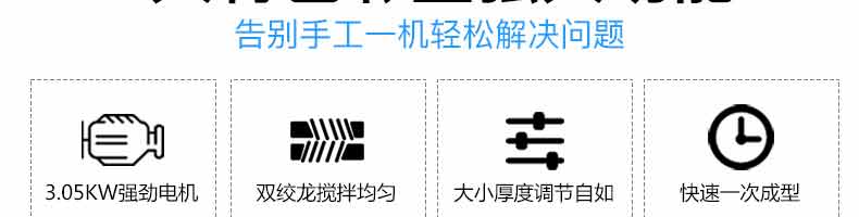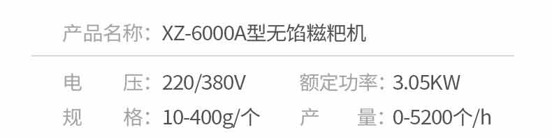 名稱6000A無餡糍粑機(jī) 電源220/380V 功率3.05KW 產(chǎn)量10-400g/個(gè) 尺寸 重量280kg 規(guī)格1560*1200*1300mm 其他