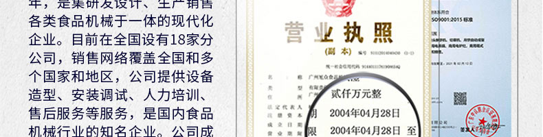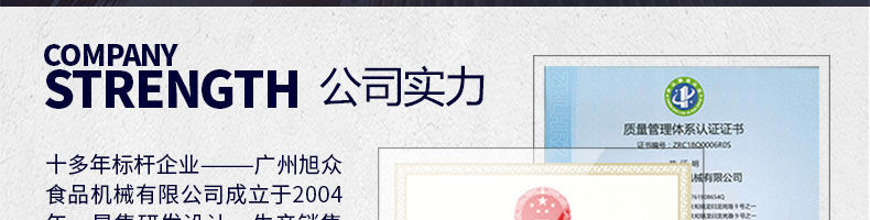 廣州旭眾食品機械有限公司是一家集科研開發(fā),生產設計,營銷服務為一體的現代化生產企業(yè)?,F代化生產車間,精湛制造技術,所產機械歷經市場重重考驗,不斷贏得海內外客戶的贊譽。