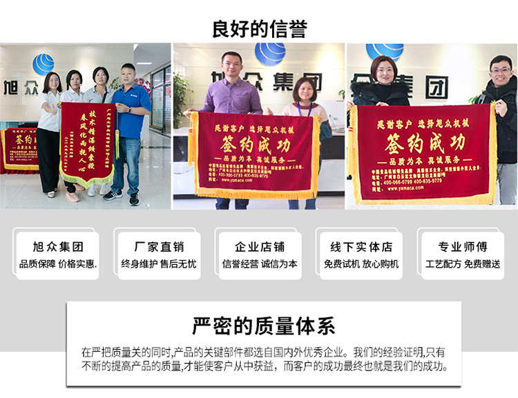 廣州旭眾食品機(jī)械有限公司是一家集科研開發(fā),生產(chǎn)設(shè)計(jì),營(yíng)銷服務(wù)為一體的現(xiàn)代化生產(chǎn)企業(yè)?,F(xiàn)代化生產(chǎn)車間,精湛制造技術(shù),所產(chǎn)機(jī)械歷經(jīng)市場(chǎng)重重考驗(yàn),不斷贏得海內(nèi)外客戶的贊譽(yù)。