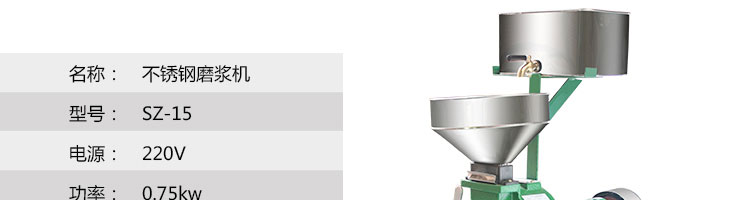 名稱SZ-15不銹鋼自動磨漿機 電源220v 功率0.75kw 產(chǎn)量1400(轉(zhuǎn)/分) 尺寸465*250*745mm 重量45kg 規(guī)格 其他