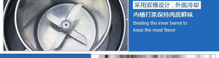 SZ-18型肉丸打漿機,本機裝肉用桶子采用不銹鋼制造,達到衛(wèi)生要求,肉桶外罩和桶底裝有冷卻裝置,確保肉漿新鮮。比手工的打漿更精細(xì),所產(chǎn)肉丸、魚丸彈性好,色澤潔白。