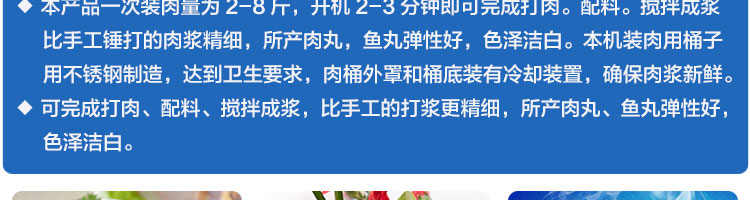 名稱SZ-18型肉丸打漿機 電源220v 功率0.75kw/1.5kw 產(chǎn)量2.3千克/小時 / 4千克/小時 尺寸330*300*780mm / 330*330*800mm 重量21kg/30kg 規(guī)格 其他