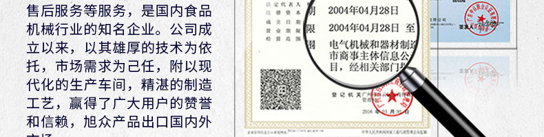 廣州旭眾食品機(jī)械有限公司是一家集科研開(kāi)發(fā),生產(chǎn)設(shè)計(jì),營(yíng)銷(xiāo)服務(wù)為一體的現(xiàn)代化生產(chǎn)企業(yè)?,F(xiàn)代化生產(chǎn)車(chē)間,精湛制造技術(shù),所產(chǎn)機(jī)械歷經(jīng)市場(chǎng)重重考驗(yàn),不斷贏得海內(nèi)外客戶的贊譽(yù)。