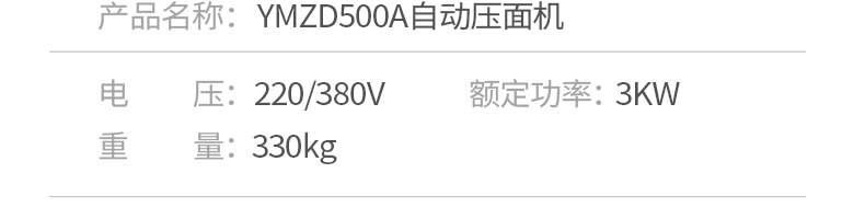 名稱500A壓面機(jī)主圖 電源220/380v 功率3kw 產(chǎn)量 尺寸1300*755*1240mm 重量330kg 規(guī)格 其他