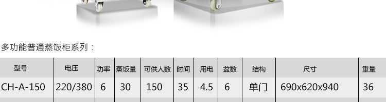 名稱CH-A多功能普通蒸飯柜 電源220/380V 功率 產(chǎn)量 尺寸 重量 規(guī)格 其他